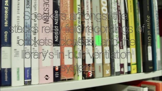 Recordings of the air conditioning system and field crickets intertwine amongst the shelves of books.